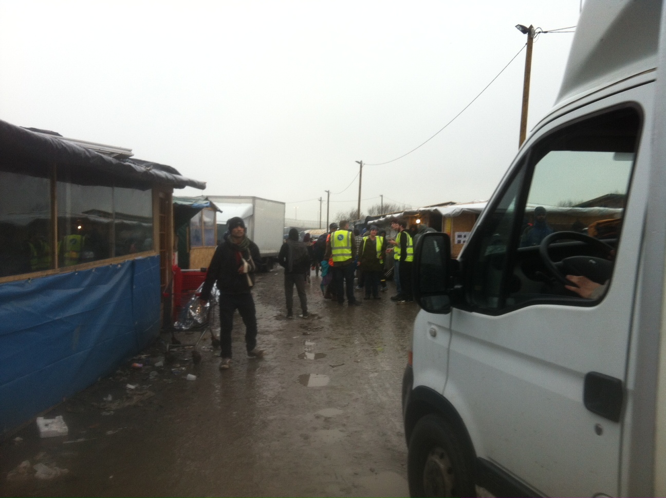 photo 5There is a huge police presence. Saturday was pretty calm, but I’m told that the cops regularly come in here with tear gas, even using it on women and children. Police brutality seems to be a big problem and adds to everyone’s anxiety; the refugees, workers and volunteers. I know it’s naive to think of police as protectors, but here they are regarded by everyone as the aggressors. Complaints have been made to the local station but are dismissed; one guy tells me he was laughed out when he went in to protest about them using tear gas on children. Around the corner from the jungle are a dozen vans full of riot police, just in case. Just in case of what I’m not sure. Certainly not what police are supposed to do. I hear of three different murders that have taken place, and a few cases of sexual assault, none of which have been thoroughly investigated by the police. Why bother, these people aren’t really human and resources are obviously better spent gassing them into submissive terror.